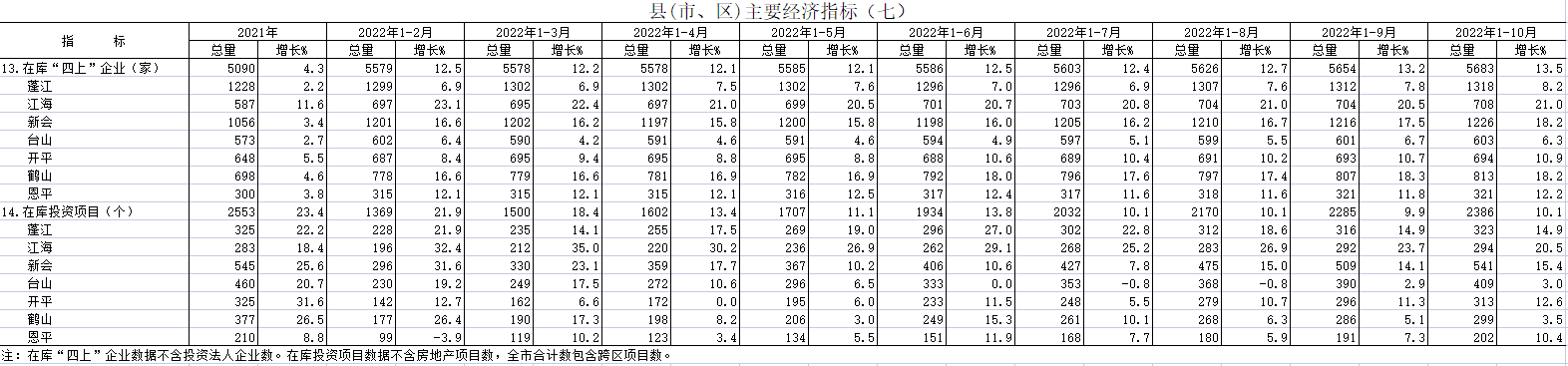 2022年10月县(市、区)主要经济指标(七)