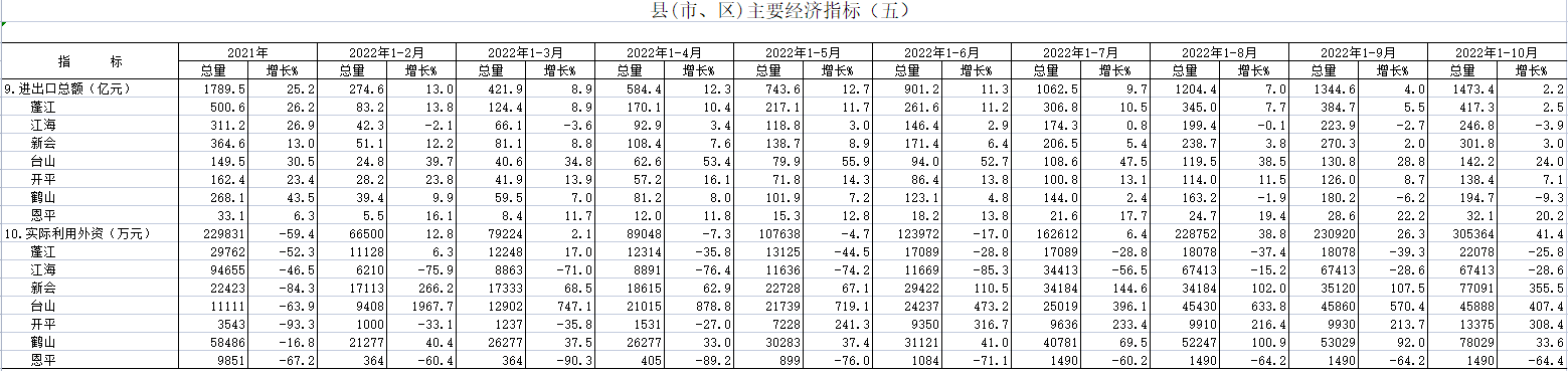 2022年10月县(市、区)主要经济指标(五)