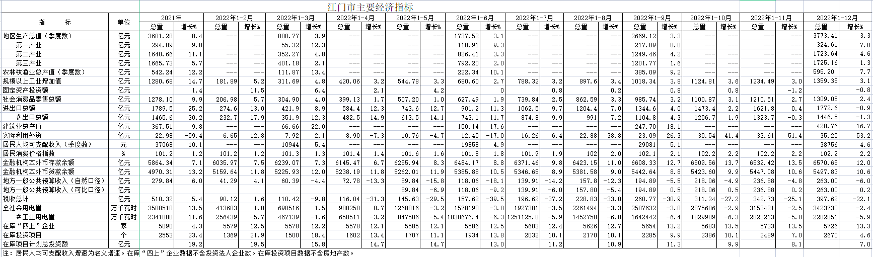 2022年12月江门市主要经济指标