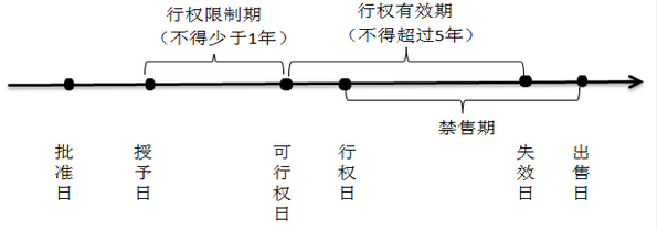 答:股权期权授权日与获授股权期权首次可行权日之间的间隔(即行权限制期)不得少于1年,股权期权行权的有效期不得超过5年。流程如下: