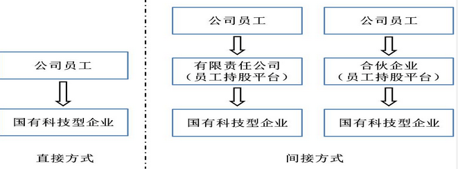 答:激励对象可以采用直接持有激励股权;也可以通过设立有限责任公司或合伙企业持股平台,采用间接持股的方式持有激励股权。需要注意的是,间接持股单位不得与企业存在同业竞争关系或发生关联交易。如下图所示:
