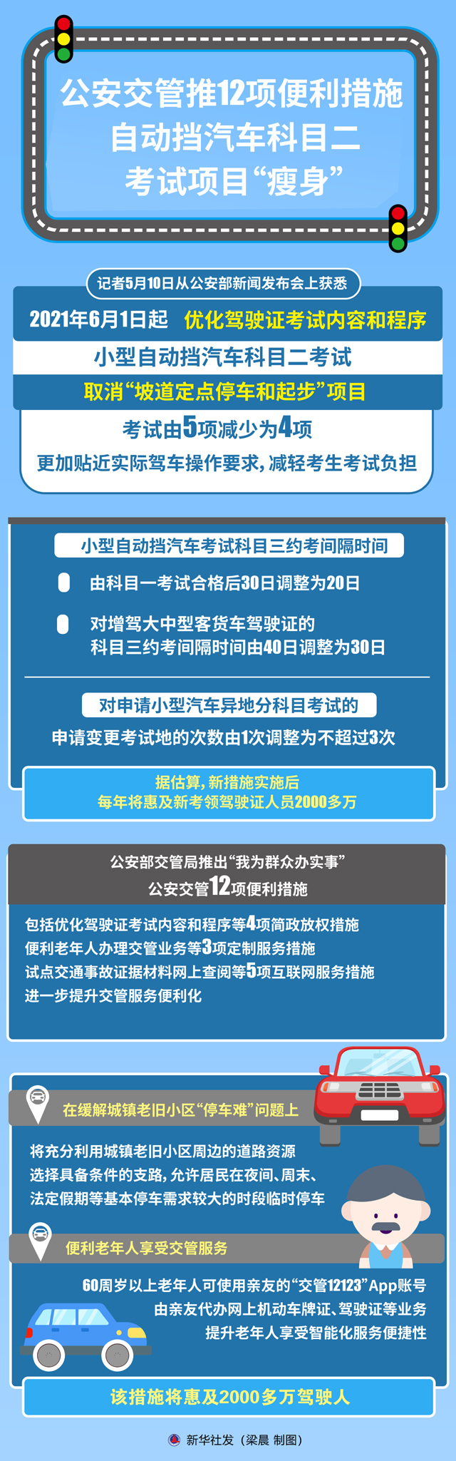 图表:公安交管推12项便利措施 自动挡汽车科目二考试项目“瘦身”