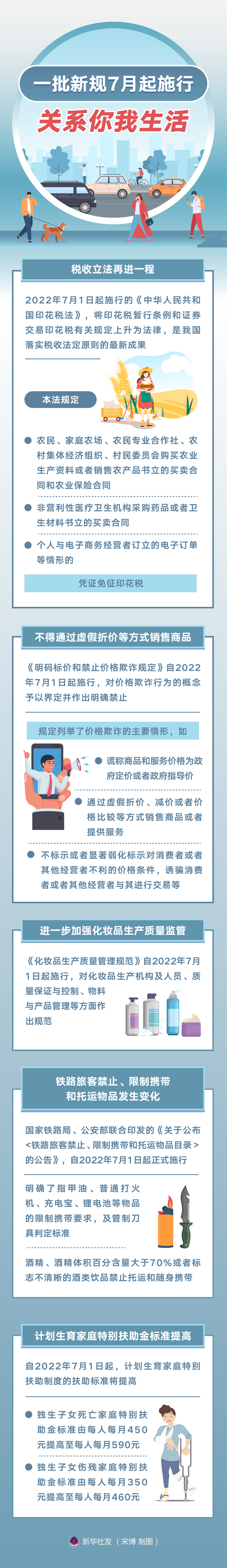 火热的7月,一批关系你我的新规开始施行。从明确减征、免征印花税的情形,到禁止价格欺诈行为,再到加强化妆品生产质量管理……不断完善的法治,让你我更有获得感。