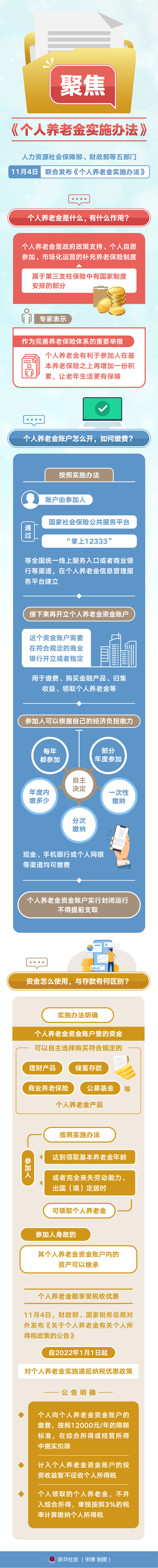 人力资源社会保障部、财政部等五部门11月4日联合发布《个人养老金实施办法》。个人养老金是什么,怎么缴纳?与存款有什么区别?围绕这些大家关注的问题,记者进行了采访了解。