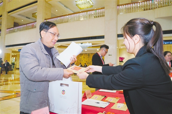 在工作人员的引导下,委员们高效有序地完成登记签到、领取证件和会议材料等流程,迅速进入工作状态,或认真研读会议文件,或交流履职心得,或精心打磨提案。