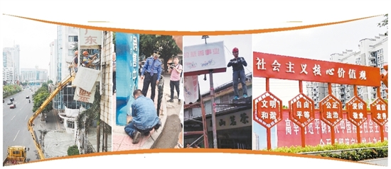 老旧、破损的户外广告拆除了,以倡导社会主义核心价值观、弘扬中华传统文化等为主要内容的大型公益广告,则在潜移默化中向市民传递一种文明正能量。