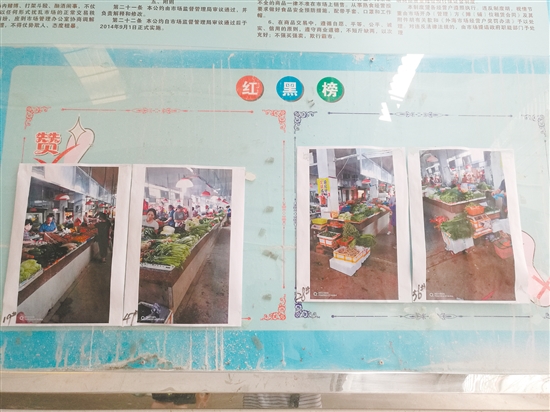记者在外海中心市场还见到,墙上张贴着《文明经营户考核公示》和《红黑榜》,两户摊档因环境整洁、秩序良好、文明服务被加4分,另两户摊档因乱摆杂物被扣除2分。