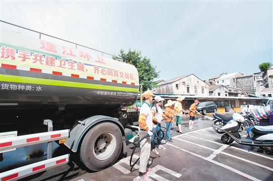 为保持城市文明卫生,近日,市环卫部门联同有关部门出动清洗车辆,合力对部分卫生死角进行彻底清洗。 麦启明 摄