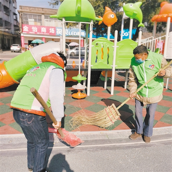 康园中心学员虽然或多或少有些残障,但在在社工的带领下,这些志愿者拿起扫把、铲子等工具,对崖南社区商业步行街、河滨公园、小码头公园等重点公共区域的沿线路段道路进行清扫,维护路段环境卫生。