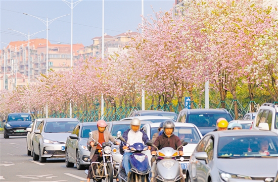 蓬江区白石大道的宫粉紫荆嫣然绽放。郭永乐摄