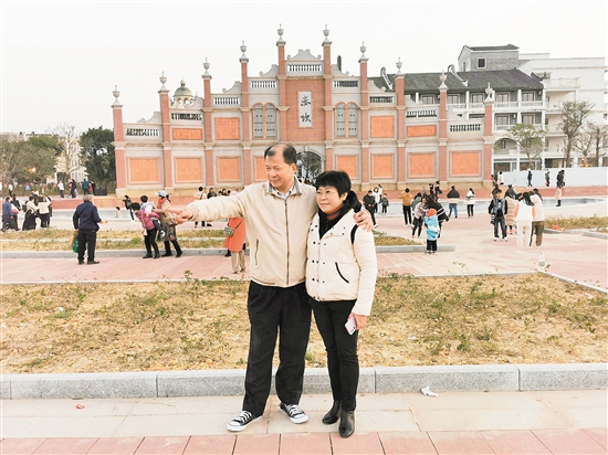廖有根与妻子吴慧英在赤坎华侨古镇留影。