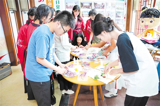 在台山市“倡导正确婚恋观念 共建和谐美满家庭”七夕节主题诗会中,特别设置乞巧活动体验区。