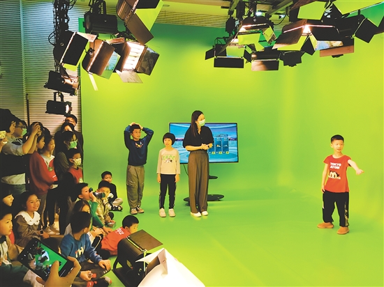 在“台站开放日”活动中,小朋友扮演气象主播预报天气。