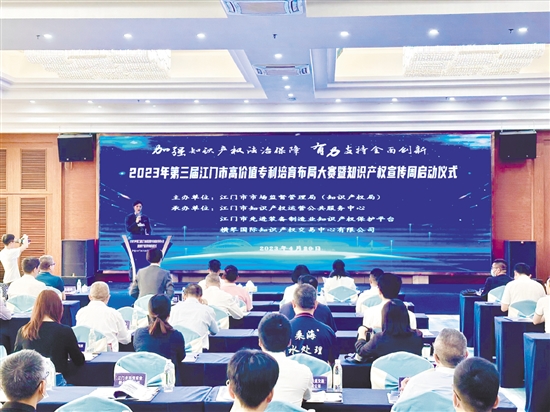 4月20日,2023年第三届江门市高价值专利培育布局大赛(简称“江高赛”)启动仪式举行,正式拉开新一轮高价值专利培育布局比拼的序幕。