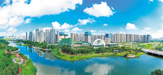 蓬江区奋力打造宜居宜业宜游的现代活力新城。图为滨江新区。
