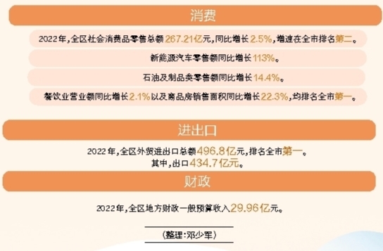 回顾2022年,蓬江全区上下深入落实市委“1+6+3”工作部署,高效统筹疫情防控和经济社会发展,推动经济运行稳中有进、向上向好,全年生产总值超870亿元,同比增长3.4%,生产总值、固投总量全市第二,房地产投资全市唯一正增长,外贸进出口总额全市第一,经济发展韧劲十足、潜力巨大。