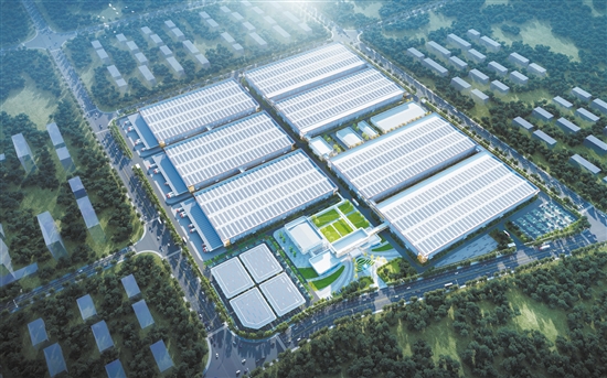 隆基绿能科技股份有限公司10GW单晶组件项目落户鹤山,未来计划投资总额超百亿元。此为项目效果图