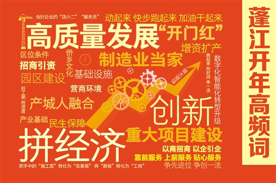 记者梳理发现,“高质量发展”“重大项目建设”“营商环境”等成为蓬江区经济工作部署的高频词,展现了新年的开局势头,释放出全力拼经济、奋战“开门红”的强烈信号。