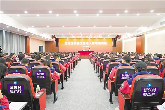 江海区继续加强网格员培训,组织380多名网格员齐聚广东南方职业学院,开启全覆盖、系统性“集中充电”。此次培训围绕江海区网格工作准入事项88项,设置九大课程,将政策解读和实务教授有机结合,增强专职网格员队伍的凝聚力、执行力、战斗力。各街道、村(社区)按照“缺什么,补什么”的原则,常态化举办网格员培训,开展企业服务、应急管理等小班现场实操教学。今年以来,区、街道两级累计举办网格员集中培训50多场,累计培训2500多人次。