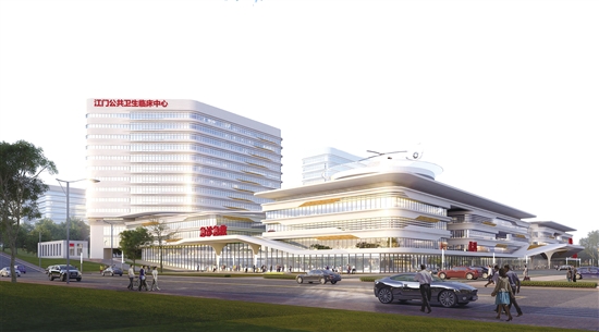 ●江门市新三甲医院(公共卫生临床中心):位于蓬江区桐新路与桐乐路交界东南侧。总建筑面积约22万平方米,包括综合医疗中心、科研实验中心、感染病救治基地中心,计划床位数1500张,配套停车位1800个,预计2025年竣工。