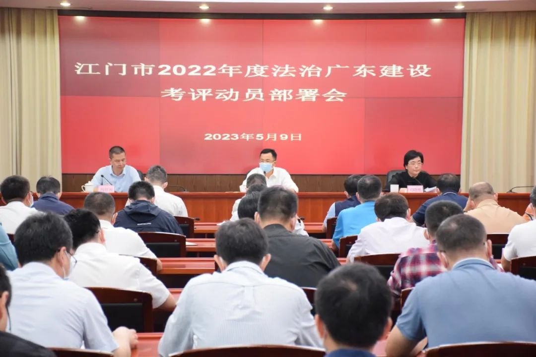 为深入学习贯彻习近平法治思想,进一步落实省委依法治省办考评相关文件精神以及市委要求,动员部署2022年度法治广东建设考评迎考工作,对法治江门建设重点任务再部署再推进,5月9日,江门市召开2022年度法治广东建设考评动员部署会议。市委依法治市办领导、市直相关单位分管领导及业务科室负责人、各县(市、区)委依法治县(市、区)办负责人、司法局局长参加了会议。市委常委、市委秘书长蔡德威出席会议并作动员讲话。