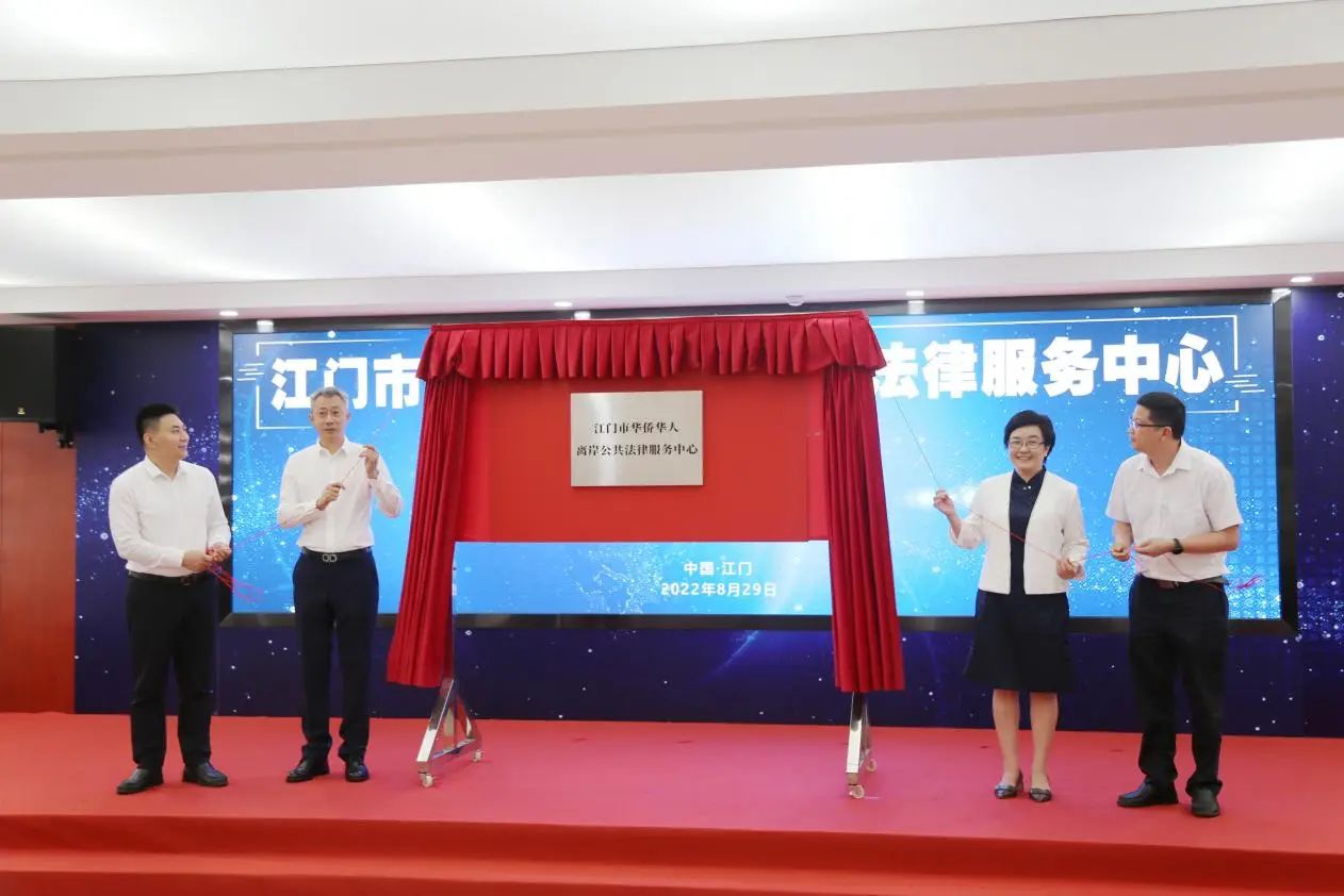 2022年8月29日,江门市华侨华人离岸公共法律服务中心依托市公共法律服务中心正式揭牌并投入运营,集法律宣传、咨询、培训、诉讼代理、公证、调解、司法鉴定等多种服务于一体,通过引进布点全球89个国家的律师事务所,开辟涉外法律服务专区,实现涉侨公共法律服务一门办理。9月15日,省委常委、省委政法委书记袁古洁,市委书记陈岸明到江门市公共法律服务中心调研,听取中心建设情况汇报并给予充分肯定,为江门涉外法治建设护航高质量发展指明方向。