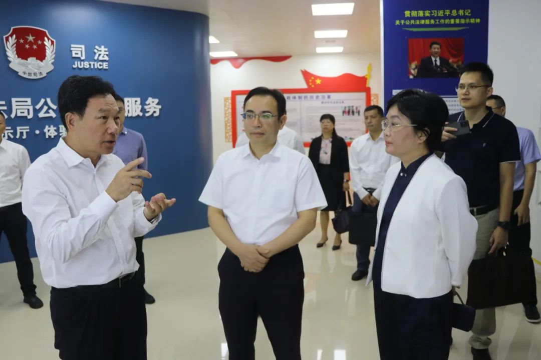 林小龙一行先后参观了惠州市公共法律服务中心、综治中心、行政复议大厅和复议庭,实地走访惠城区祝屋巷矛盾纠纷大排解工作室,详细了解惠州市法治建设工作情况。在惠州市综治中心和祝屋巷矛盾纠纷大排解工作室,调研组深入了解网格化管理、精细化服务、信息化支撑的市域社会矛盾综合治理机制建设,以及社区矛盾纠纷多元化解等基层治理工作情况。在惠州市公共法律服务中心,调研组详细询问综合性实体平台、多元化网络平台、法德大讲堂平台的建设情况。调研组还认真听取了惠州市推进“智慧复议”信息化建设和行政纠纷实质化解工作经验介绍。