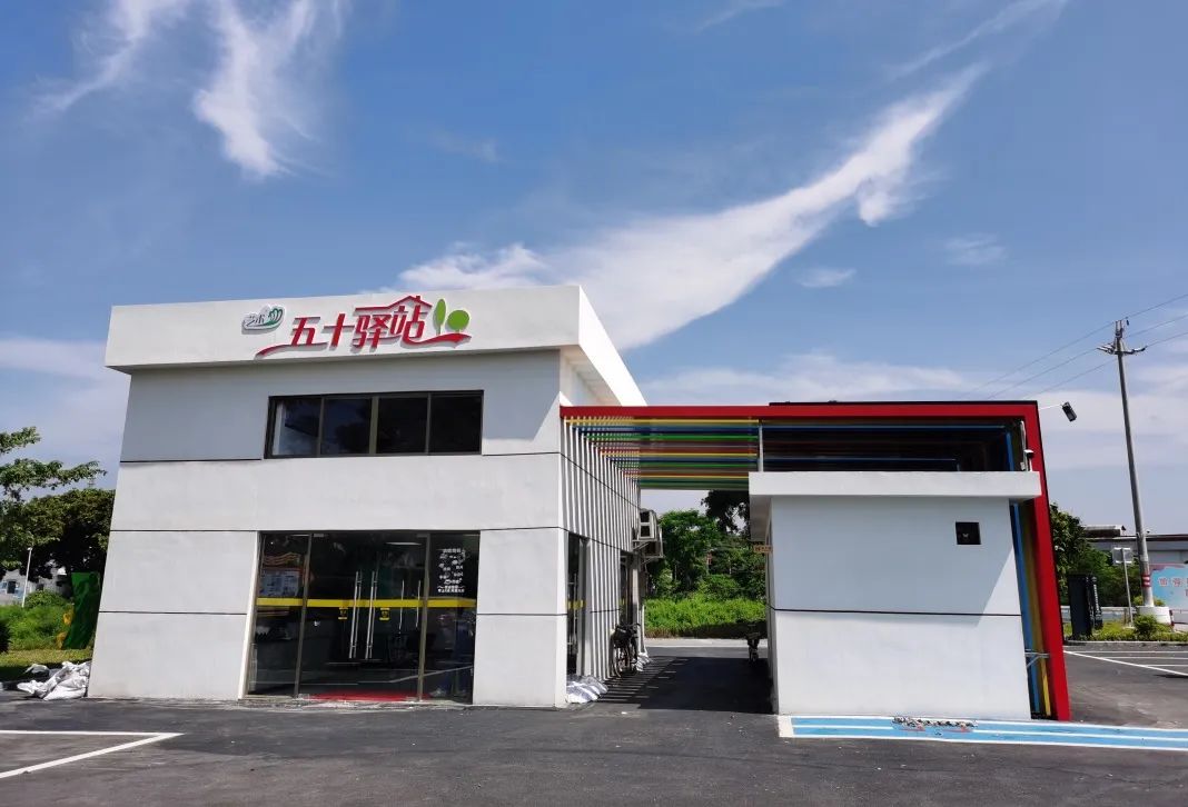 尤其让人瞩目的是,这条示范路段旁边还新建了一个五十驿站。它集交通、休闲、文艺、观光、服务等功能于一体,配备有停车区、候乘区、公共厕所、免费热水点、小型咖啡吧等便民服务功能,驿站内的橱柜摆放着各种四九特产,成为当地的一个网红打卡点,达到了以路兴旅惠民的效果。